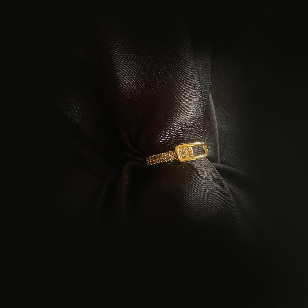 Radiant and refined, the New Golden Crystal Ring sparkles with embedded crystals on a sleek gold band. Ideal for adding a touch of glam to any look.